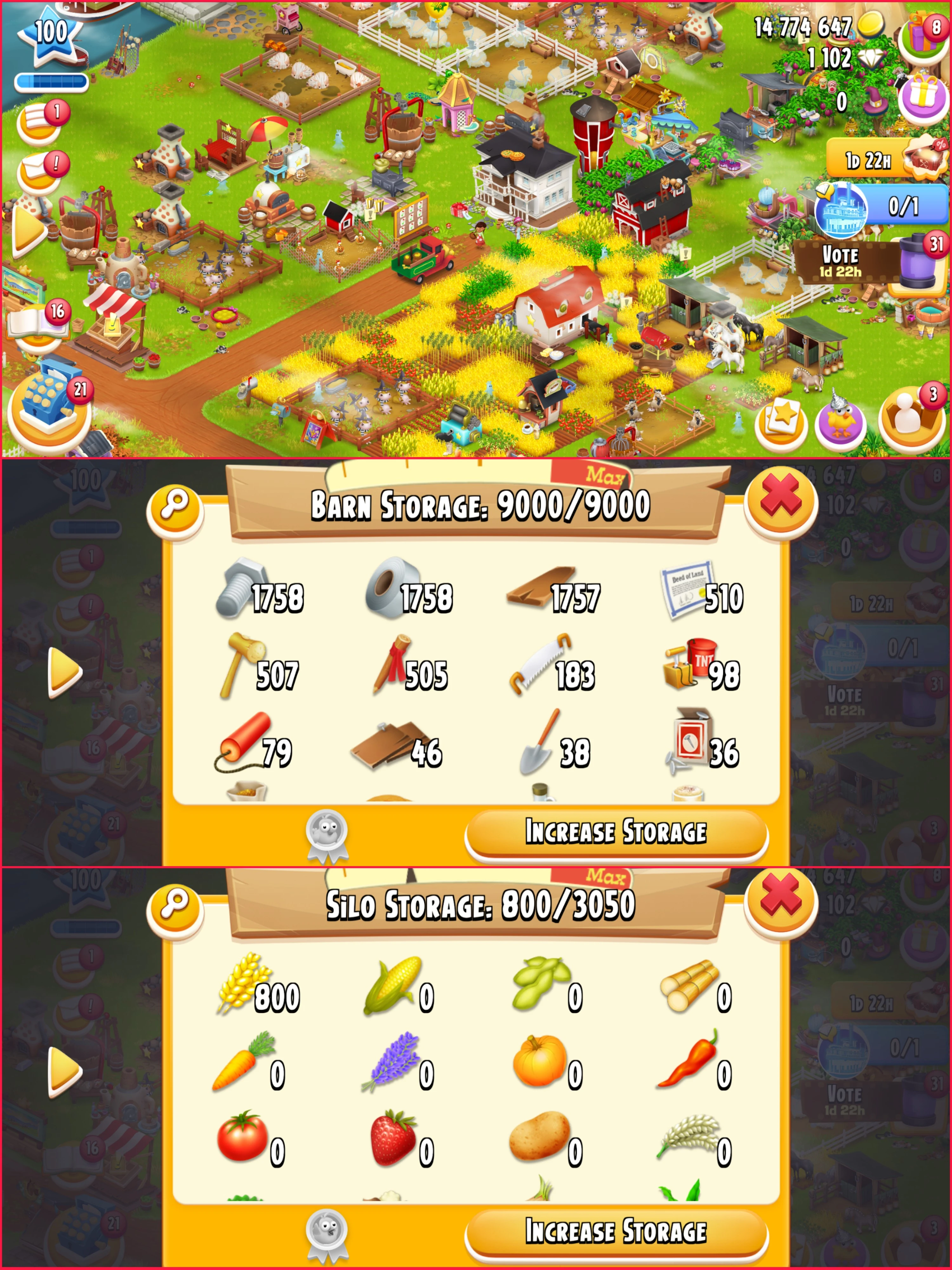 LEVEL 100 🌾 9000 BARN & 3000 SILO FULLY FILLED BARN 🐮 14M+ COINS 💰 & 1102 DIAMONDS 💎 LAND & BEM TOOLS INCLUDED 🧺 FULL ACCESS 🔑 INSTANT DELIVERY ⚡
