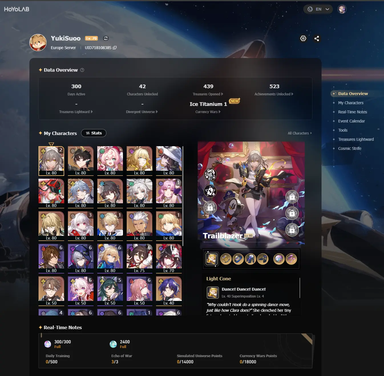 #HK2202 Europe TL70 | LEGS:38 | Clara E3+Fu Xuan E1+Gepard E1+Saber E1+Himeko E1+Rappa+Sunday+Ruan Mei+Feixiao+Luocha+Sparkle+Dr.Ratio | LEG HEROES/CONES: 20/9