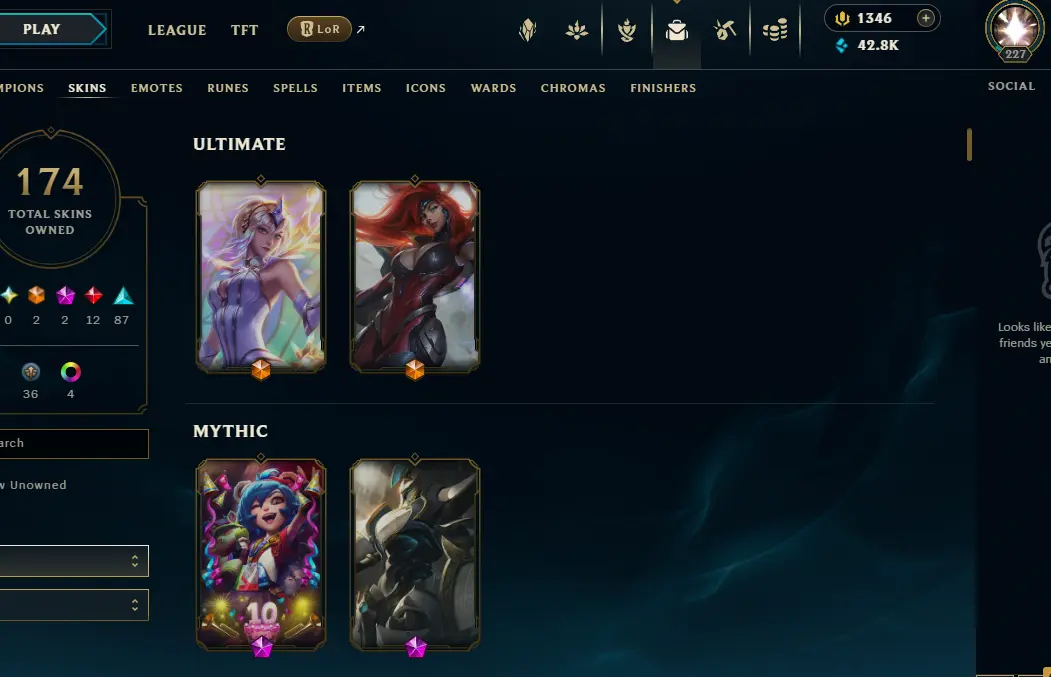 【LAN】🌍 Level 227 | 🔥174 Skins |🏆 BRONZE 3🏆|💠 42K BE |✨1346 RP| 🧙♂️ FULL Champions|📩 Full Access|⚡ Instant Delivery|🛡️ High Quality & Secure