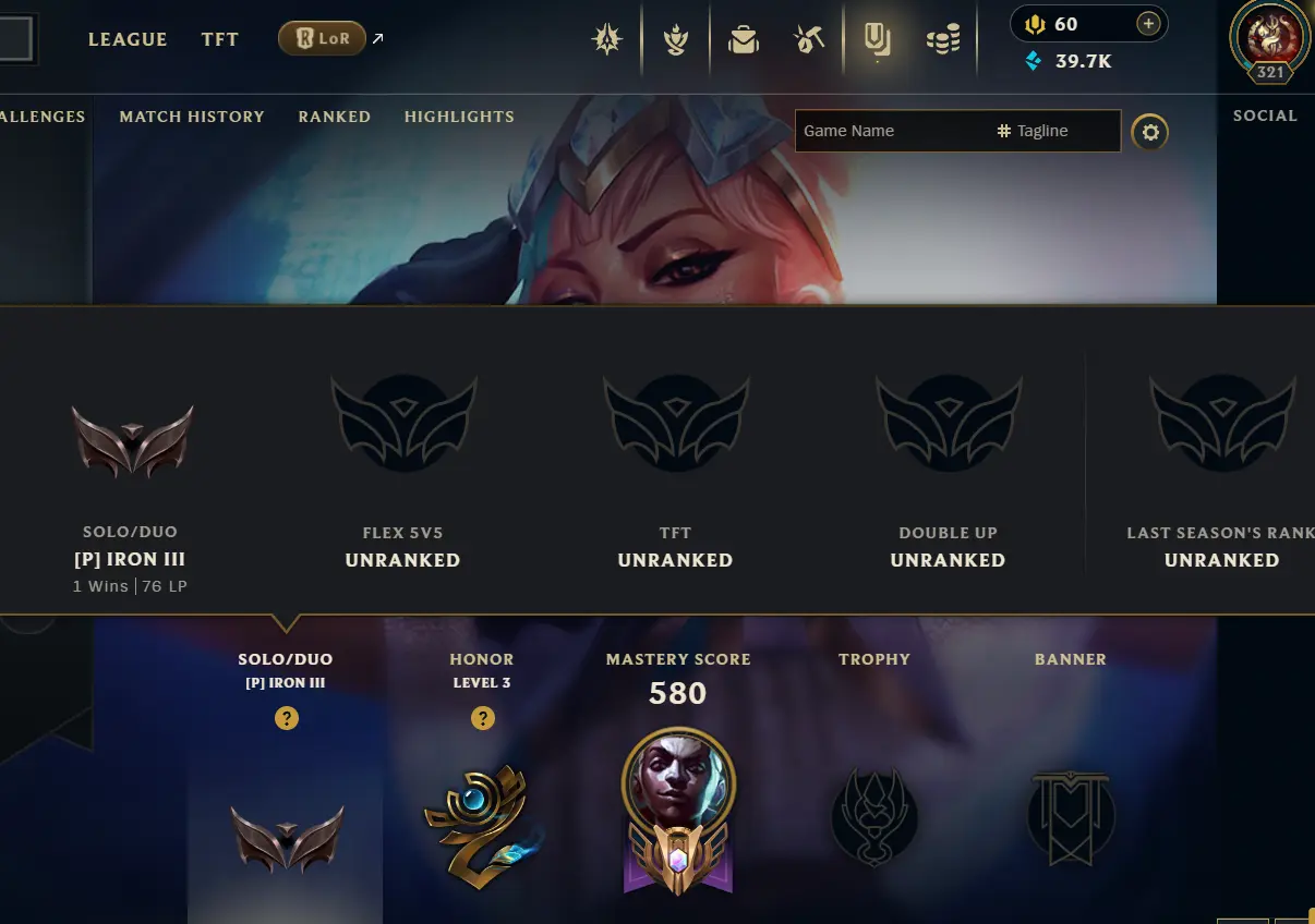 【LAN】🌍 Level 321 | 🔥120 Skins |🏆IRON🏆|💠39.7K BE |✨ 60 RP| 🧙♂️ 167 Champions|📩 Full Access|⚡ Instant Delivery|🛡️ High Quality & Secure