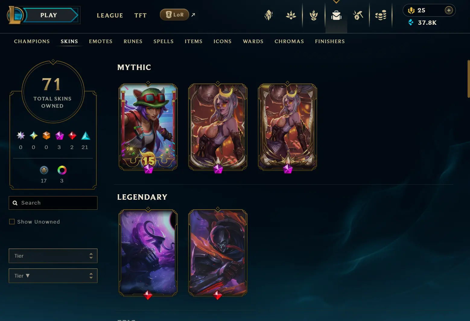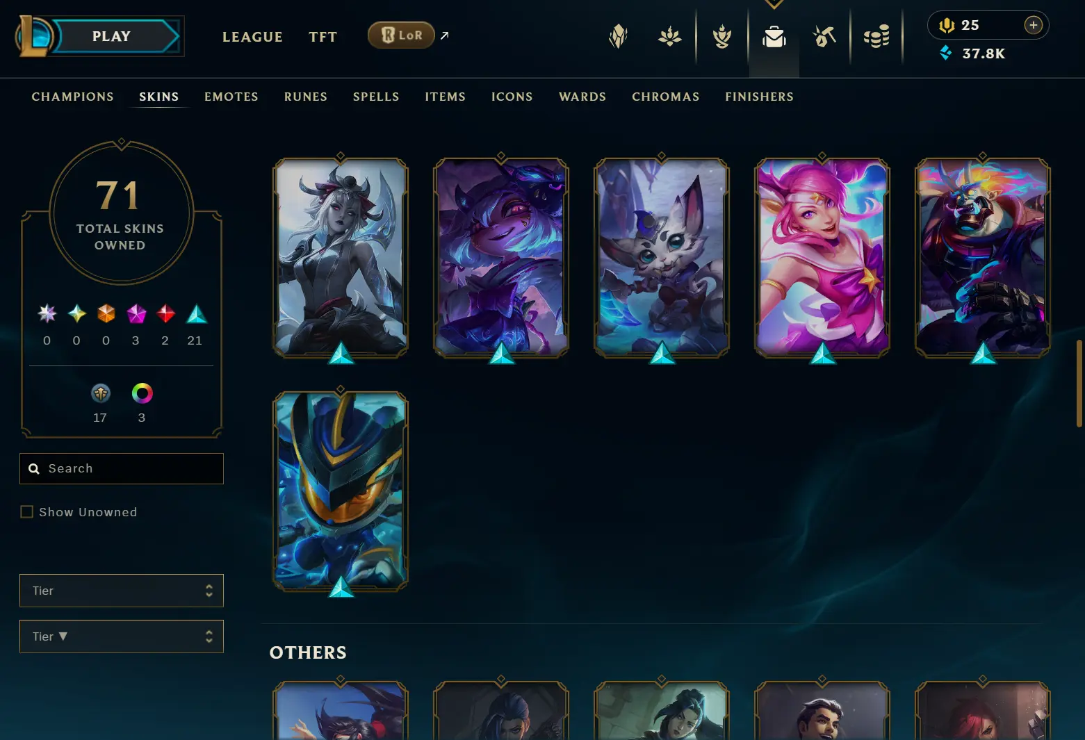 🧩 LAS ⸱ LEVEL 260 ⸱ 🪐 UNRANKED ( BRONZE 4 LAST SEAS ) ⸱ 71 SKINS [ 37850 BE , 25 RP ] ⸱ HONOR LVL 3 ⸱ 140 CHAMP 🧸
