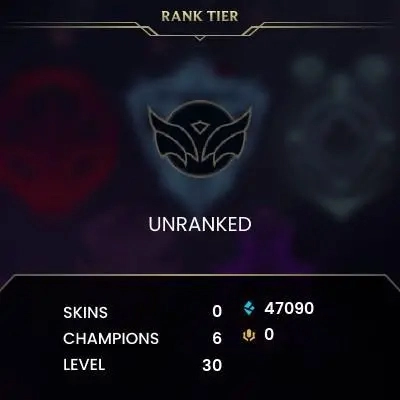 ✨ LAS ✨ Level 30 🔖 Unranked 🔰 47090 Blue Essence 💠 2 Skin Shards 🎀 Full Access 🔥