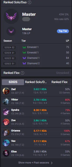 🔥LVL229 Master 110+LP 60%WR Handleveled💎131Champs 107Skins 28K BE✅Lifetime Ownership Guarantee ⸱ Never Taken Back
