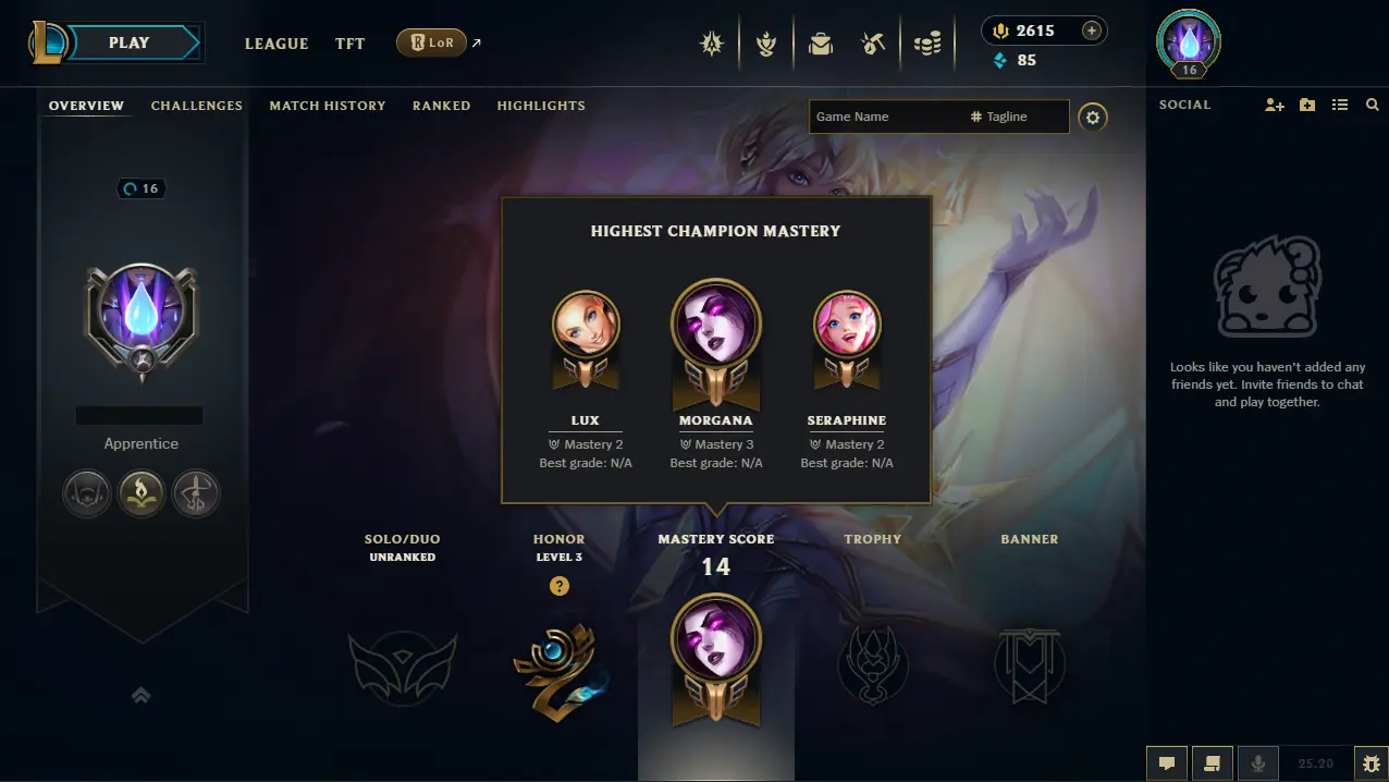 [NA] 39 Champions + 8 skins ~ Elementalist Lux + Dawnbringer Morgana + Pulsefire Twisted Fate + Shan Hai Scrolls Kog'Maw & 16 Lvl Unranked Smurf + 2615 RP on BALANCE