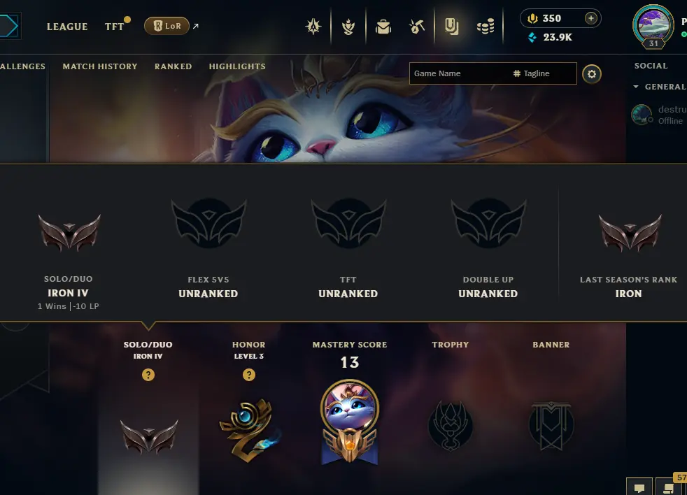 ⚡ 【 NA 】 ⸱ Iron IV 37.1% WR ⚡ | Hand ⸱ ( leveled + De-ranked ✌️ ) | Unverified ✅ | 23955 BE 💵 | 350 RP 💰 | Untouched-Loot 🔒 | Check Description 🔰