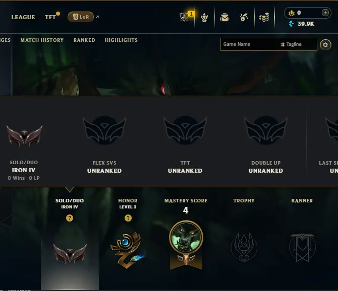 ⚫ OCE | 💰39.9K BE | REF#OCE-01 | Iron IV – 0W–5L (0% WR / Out of Placements / Low MMR) | Honor Lvl 3 | 🧙♂️20 Champs | 🧭 Lvl 30 | ⚡Instant Delivery
