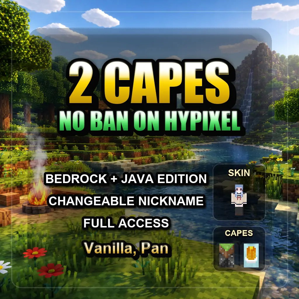 ⛏️ MINECRAFT ACCOUNT ✨ ⭐ 2 CAPES ⭐ NO BAN ON HYPIXEL 💎 FULL ACCESS