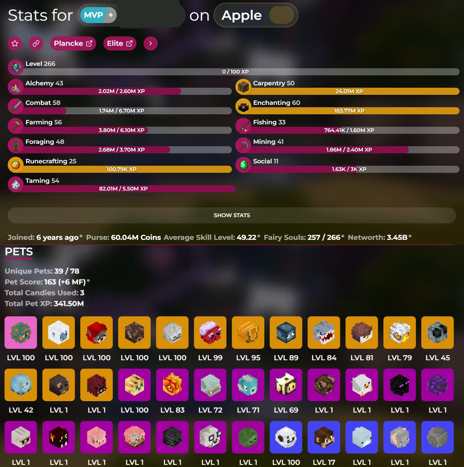 ⭐MVP+ 266 SB Lvl | 3.5B Netw ⸱ 60M Purse | 1012 MP ⸱ CATA 42 | Slayers 9/7/7/7 | 26 Minion Slots ⸱ 44 Collections Maxed | Many Pets❗5 Capes Hypixel Skyblock Acc