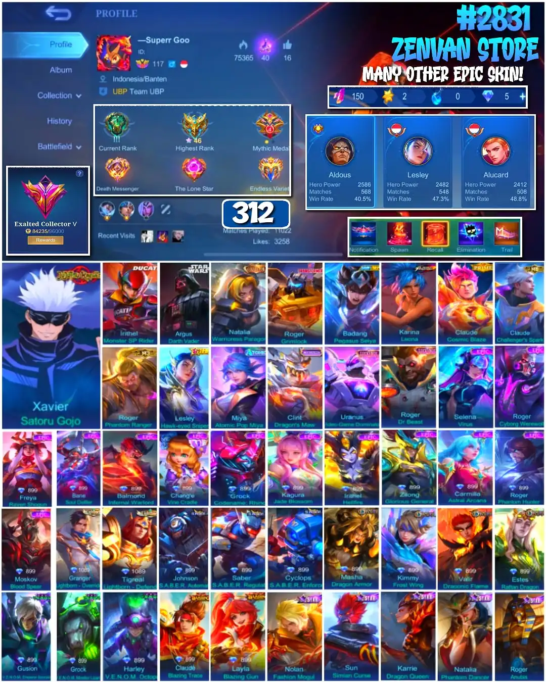 #2831 🔥 312 Skins 🔥 Collector Natalia 🔥 Jujutsu Kaisen Gojo 🔥 Ducati Irithel 🔥 StarWars Argus 🔥 Prime Claude 🔥 Atomic Miya 🔥 Many Limited 🔥 Many Epic 🔥 Safe Account ✅