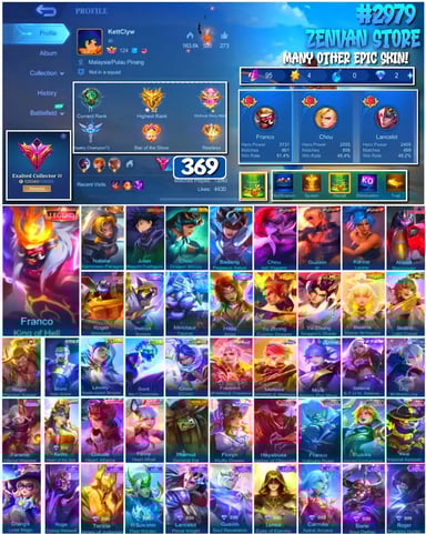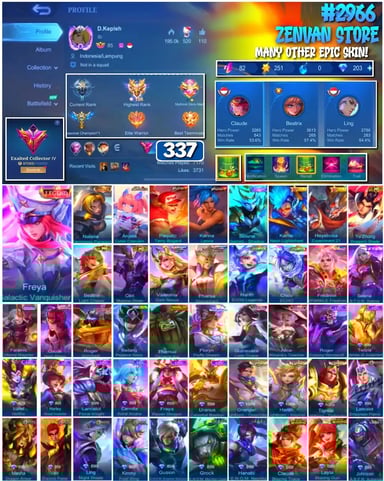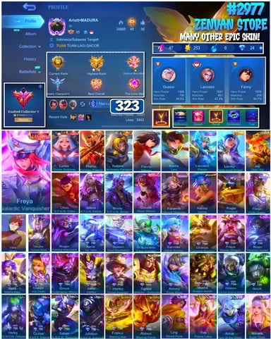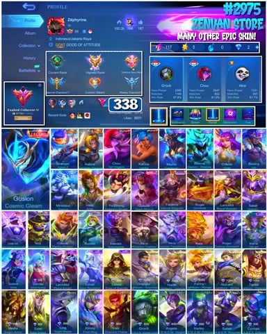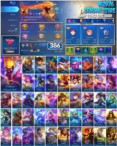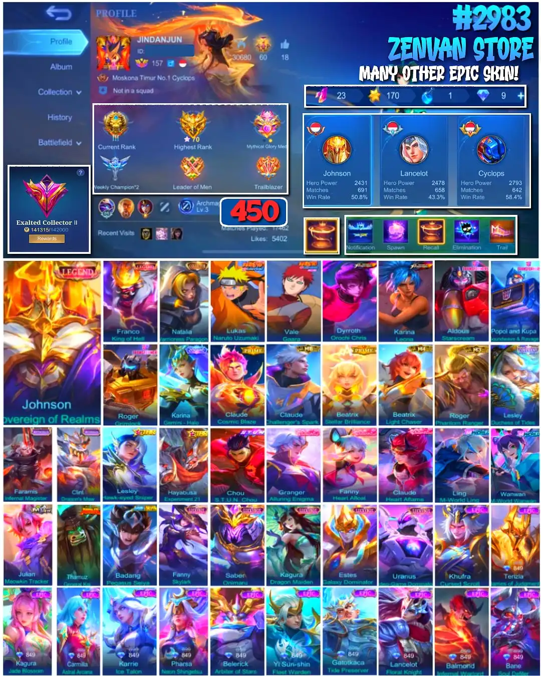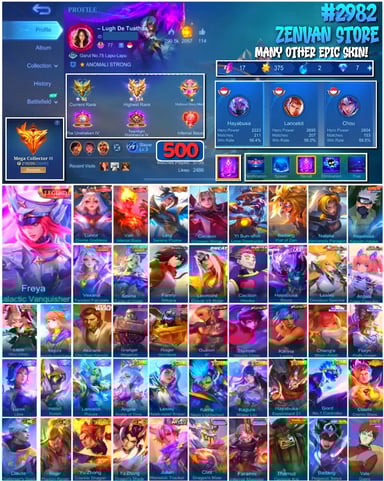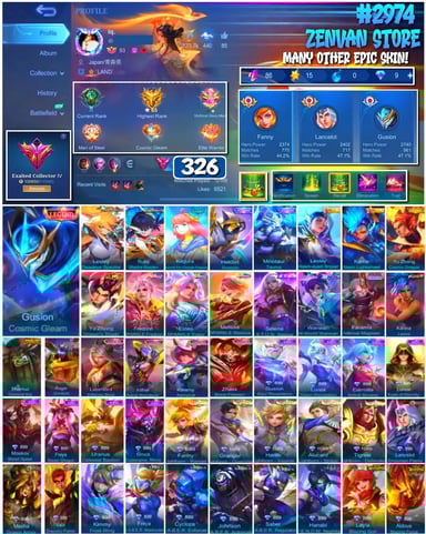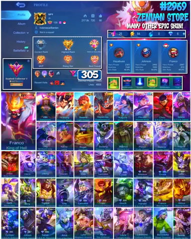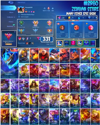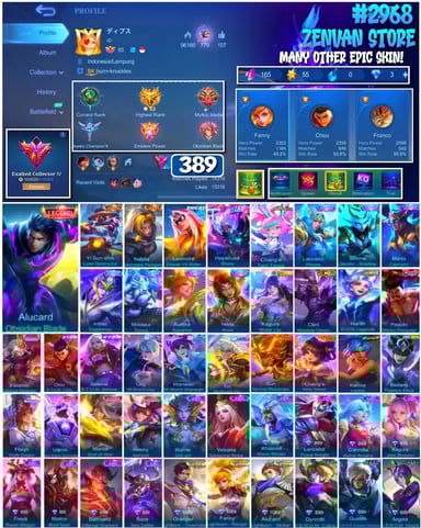 #2983 🔥 450 Skins 🔥 Legend Jhonson, Franco 🔥 Collector Natalia 🔥 Naruto 🔥 Transformers Aldous, Popol & Kupa, Roger 🔥 Prime Claude, Beatrix 🔥 Stun Chou 🔥 M-World Ling, Wanwan 🔥 KoF Dyroth, Karina 🔥 Many Limited 🔥 Many Epic 🔥 Safe Account ✅