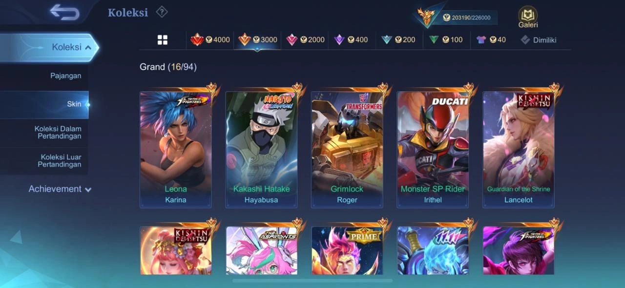 Best Deal Mega Colector III🔥517 Skins🔥Jhonson X Lunox Legend🔥Kakashi Hatake🔥Lance x Angela Kishin🔥Ceci Hisoka🔥Melisa Jjk🔥11.11 Xborg x Nolan🔥Ducati irithell🔥Acces Full🔥Cheapest and Safe Account