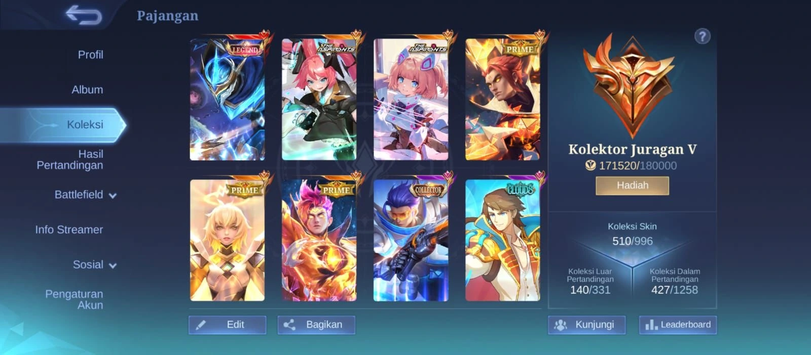 Best Deall Mega Colector IV🔥510 Skins🔥Gusion Legend🔥Granger Transformer🔥Layla Aspirant🔥2 Prime🔥Colector Granger🔥Acces Full🔥Cheapest and Safe Account