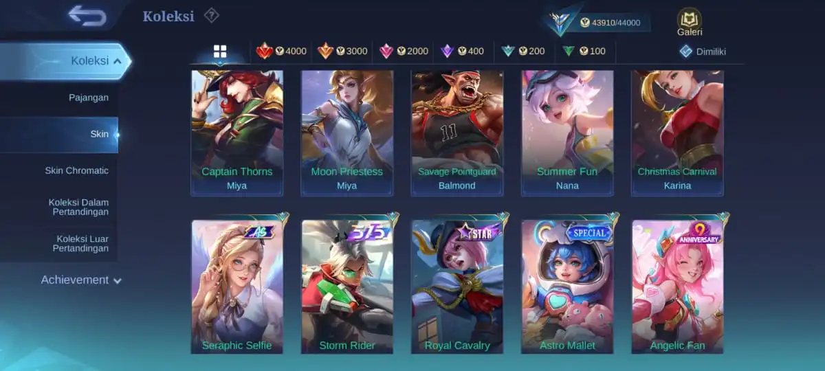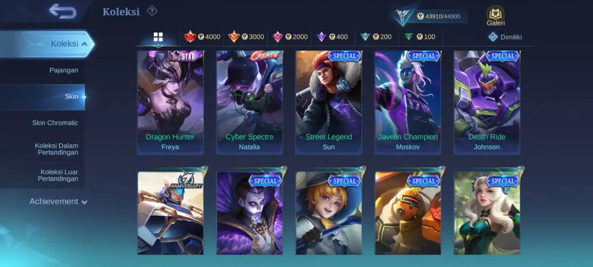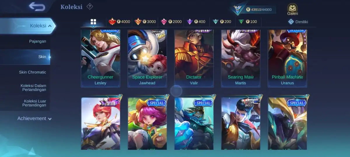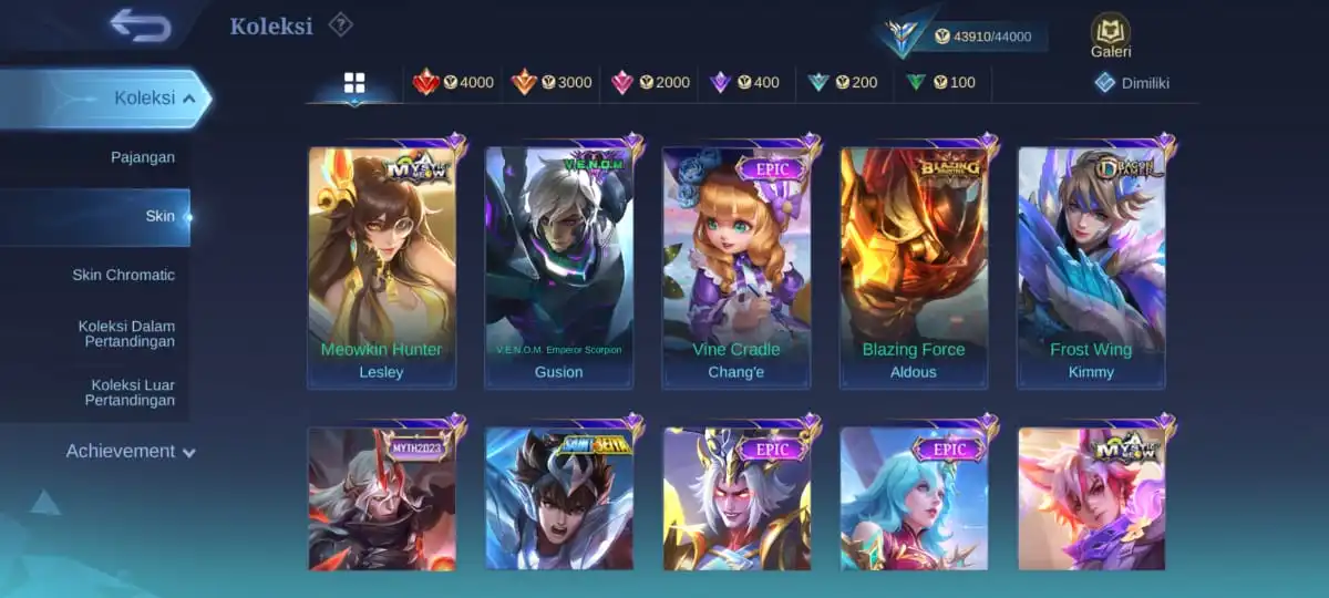 BEST MEGA DEAL✨HERO MAX 130✨SKIN 215✨EMBLEM MAX ✨HAYA GOLD STAR✨NATALLIA CC✨VALE NARUTO✨BADANG SEIYA ✨FANNNY VALENTINE✨2x MSC✨MYTH 2✨EPIK✨DELUXE 25✨EXCEPTIONAL 43✨CHROMATIC 20✨SAFE ACC✨INSTAN DELIVERY