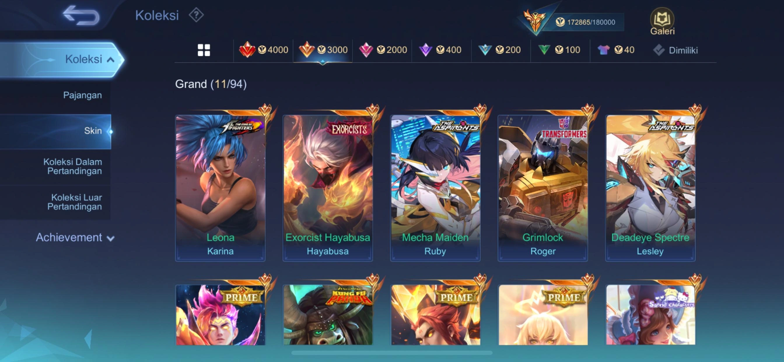 Bestt Deal Cheap Mega Colector IV🔥460 Skins🔥Legend Granger X Valir X Jhonson🔥Exorcist Hayabusa🔥JJK Gojo Satoru🔥2 Aspirant🔥3 Prime🔥Acces Full🔥Cheapest and Safe Account