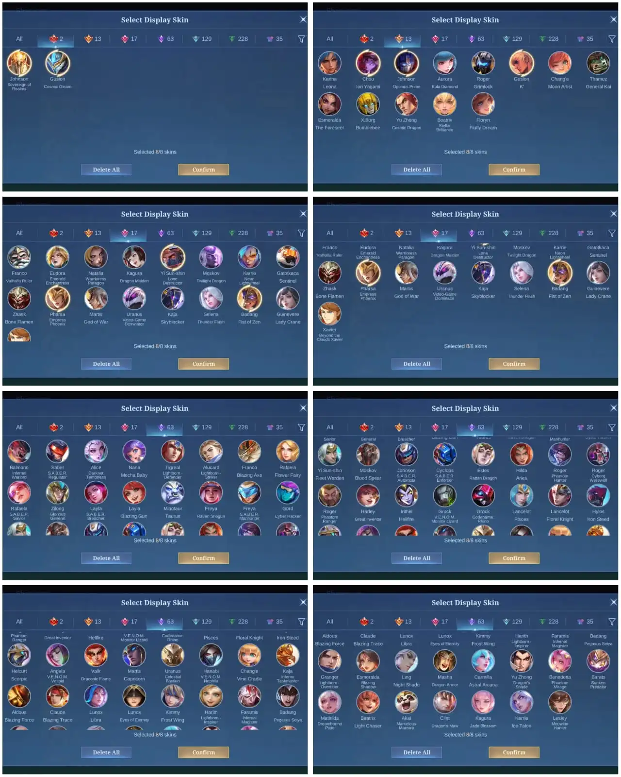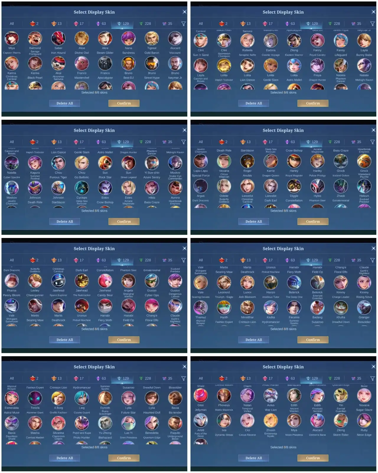 [IOS/ANDROID] CEL LVL 108 | 129 HEROES | 487 SKINS | MEGA 4 | JOHNSON & GUSION LEGEND ⸱ CHOU KOF ⸱ GUSION KOF ⸱ 4 COLLECTOR BADANG YSS PHARSA ⸱ 11 LUCKYBOX