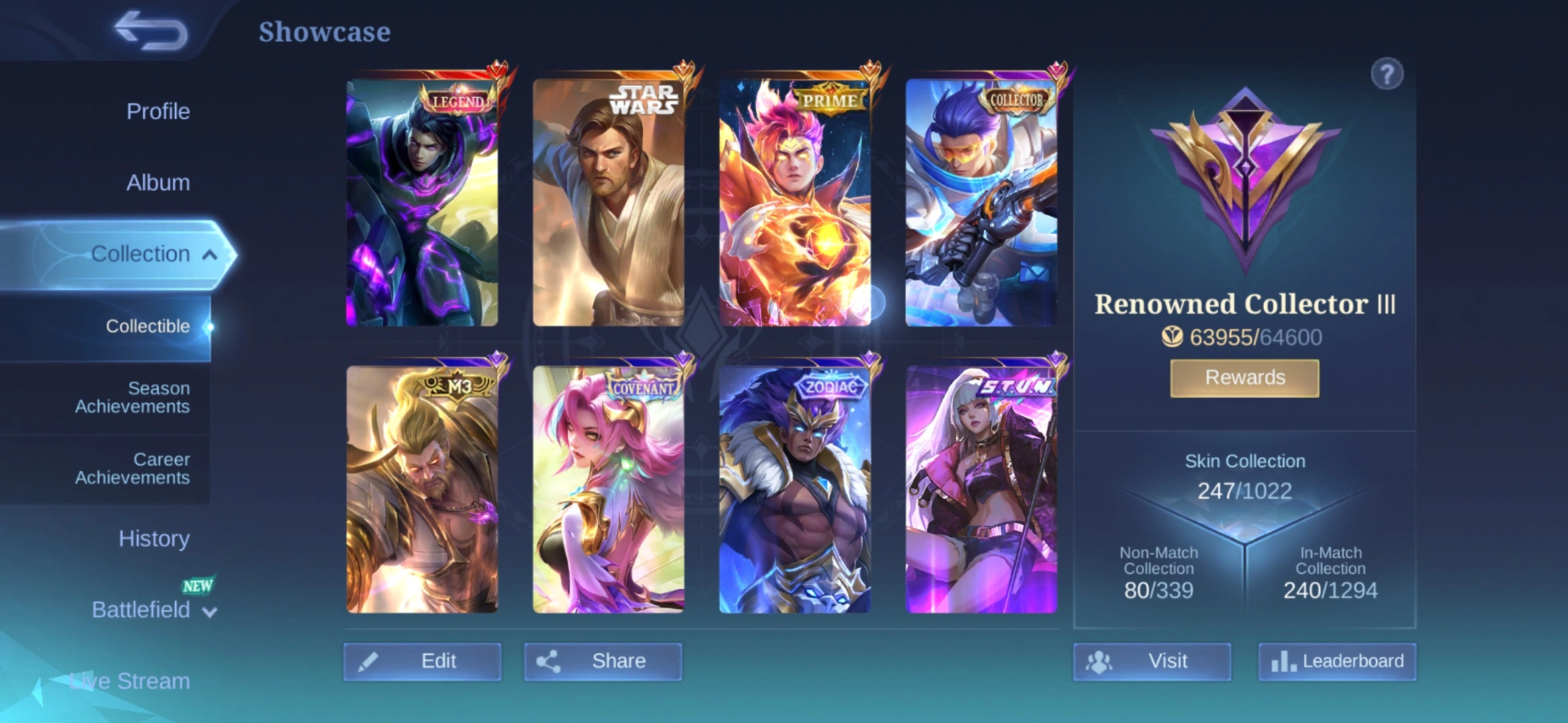 MB906|LV83|HERO 125|SKIN 247|RENOWNED COLLECTOR 3|ALUCARD LEGEND|ALUCARD OBI WAN STAR WARS|CLAUDE PRIME|KARINA KOF|GRANGER COLLECTOR|BADANG ZODIAC|ROGER M3|SELENA STUN|BENEDETTA COVENANT|BADANG SEIYA|VALE GAARA|8 EPIC|2 MEOWKIN