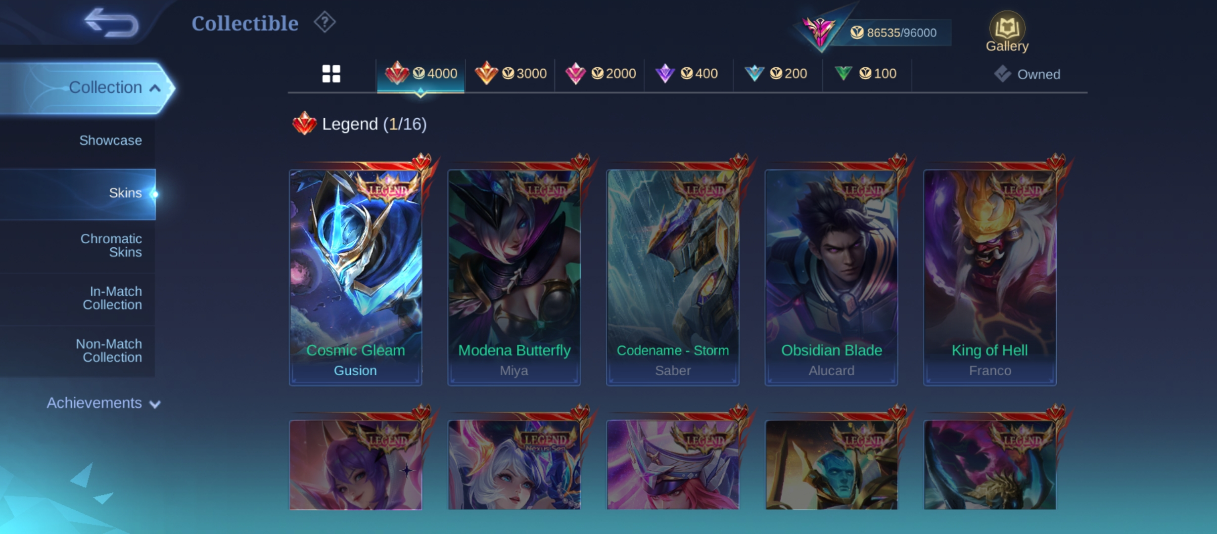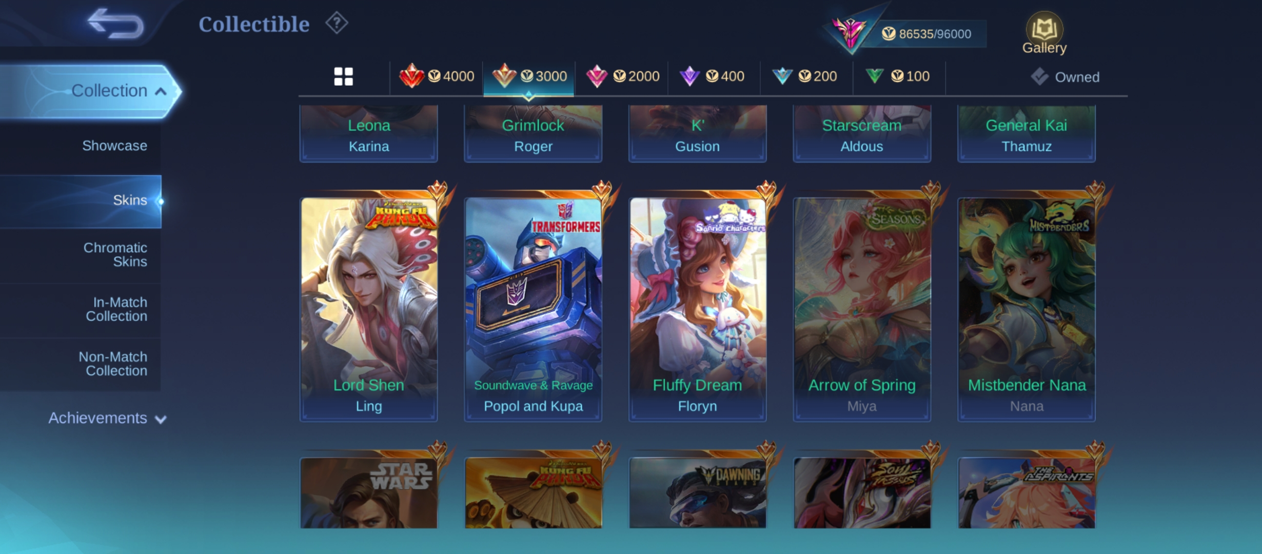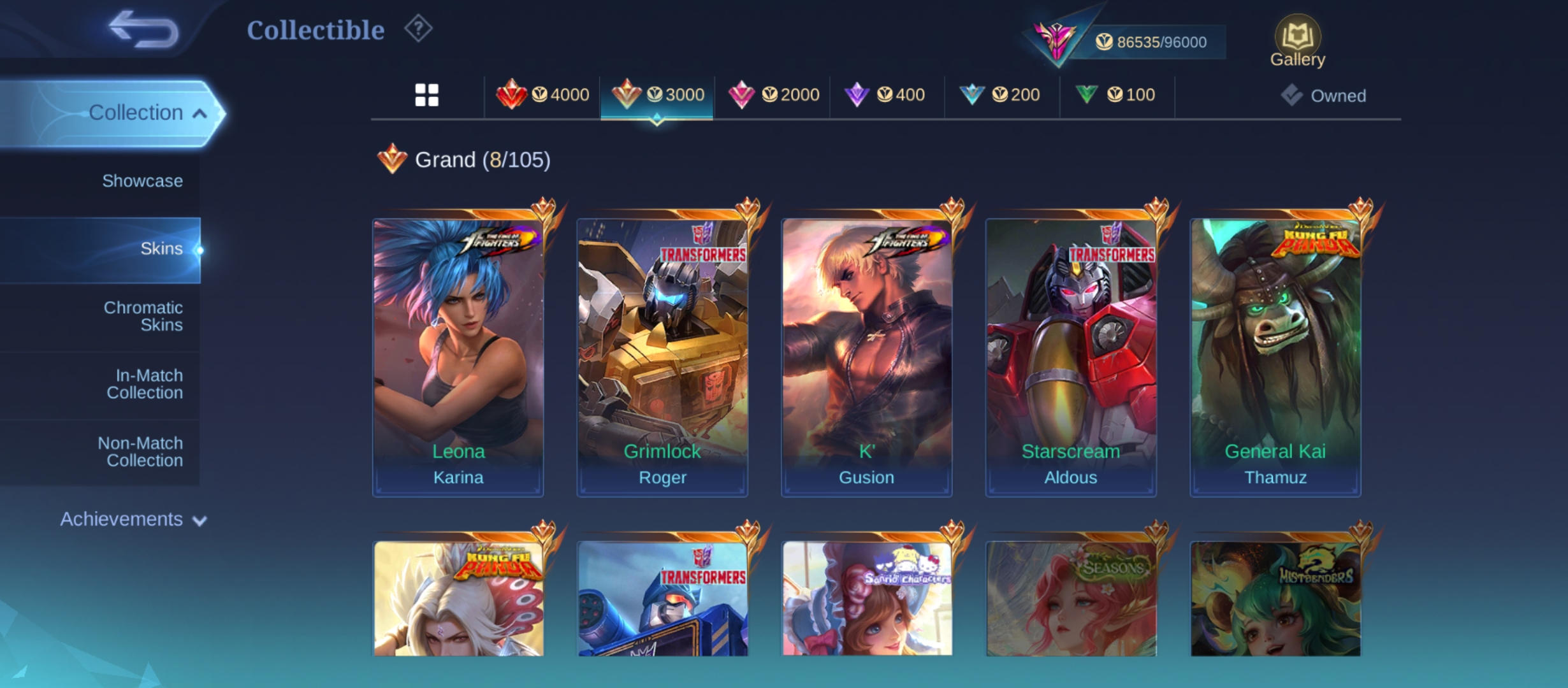 PL616|Lvl 56|EXALTED V|268 SKIN|ALL EMBLEM MAX|GUSION LEGEND|GUSION KOF|2 KUNGFUPANDA(LING,THAMUZ)|3 TRANSFORMER(ALDOUS,ROGER,POPOL KUPA)|3 LUCKYBOX