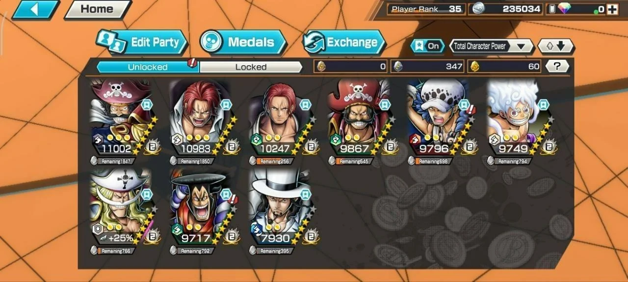 IOS Android 🛍️ Level35 💎 EX9 ⸱ Rager ⚡ Shenks 🏆 Luffy Gir ⚔️ White Bord 💯Saifer 🎖️ Eden ⸱ Code1596