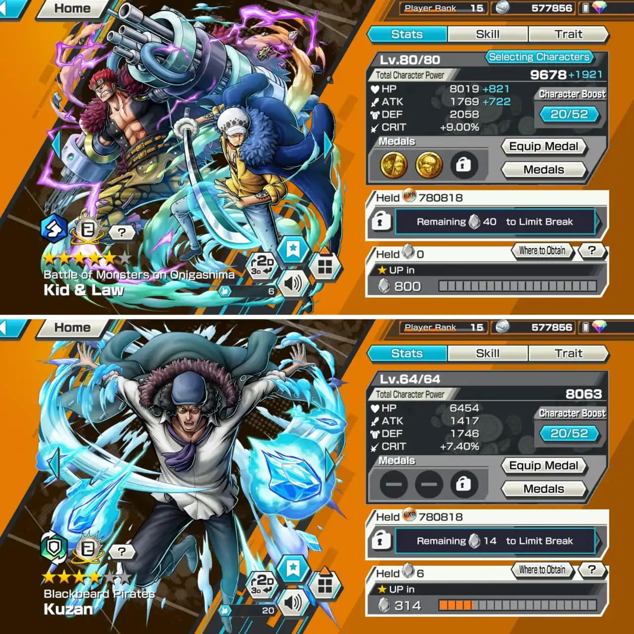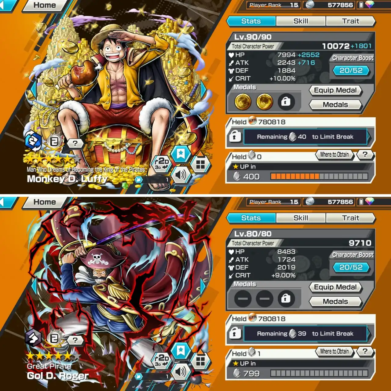OP208✨5EX✨KING LUFFY✨ROGER✨KIDLAW✨KUZAN✨LUFFY GEAR 5✨GOOD MEDALS✨MANY CHARACTER✨ANDROID/IOS