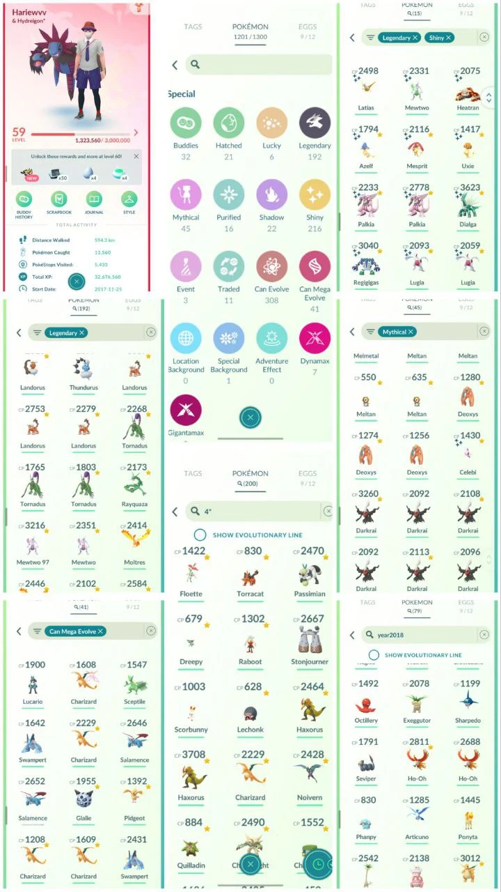 AB9 | Level59 | 192 Legendary | 216 Shiny | 15 Shiny Legend | Shiny Mewtwo | Rayquaza | 200 Hundo | 2018 Pokemons | Mega Lucario | Shiny Celebi | Darkrai | Deoxys | Shiny Lugia | 2017 Account