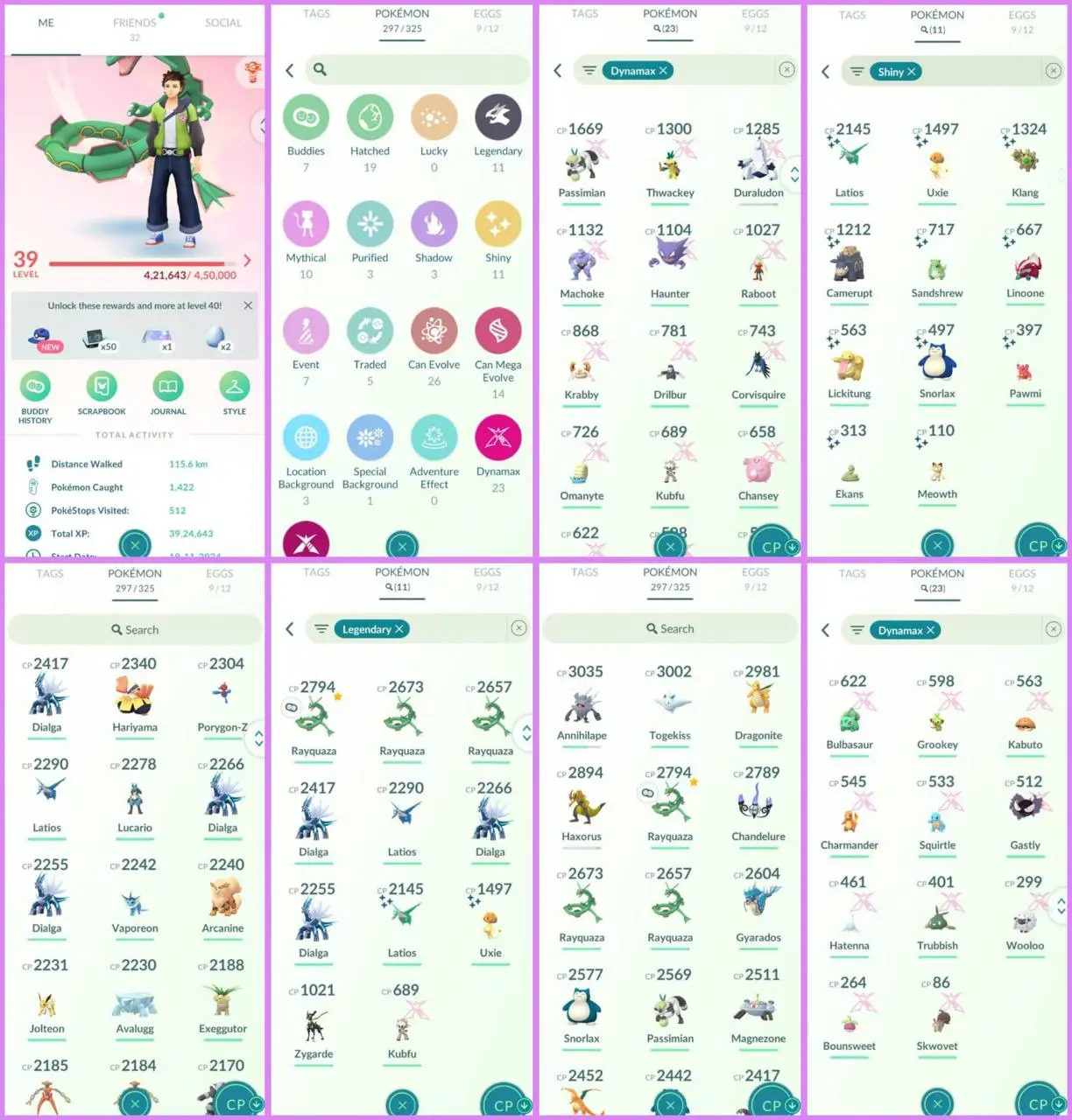 LEVEL 39(VALOR)⭐️297/325 Pokemon⭐️11 Legendary⭐️11 Shiny⭐️3 Legendary Rayquaza⭐️Shiny Snorlax⭐️Name Change Available⭐️Instant Delivery