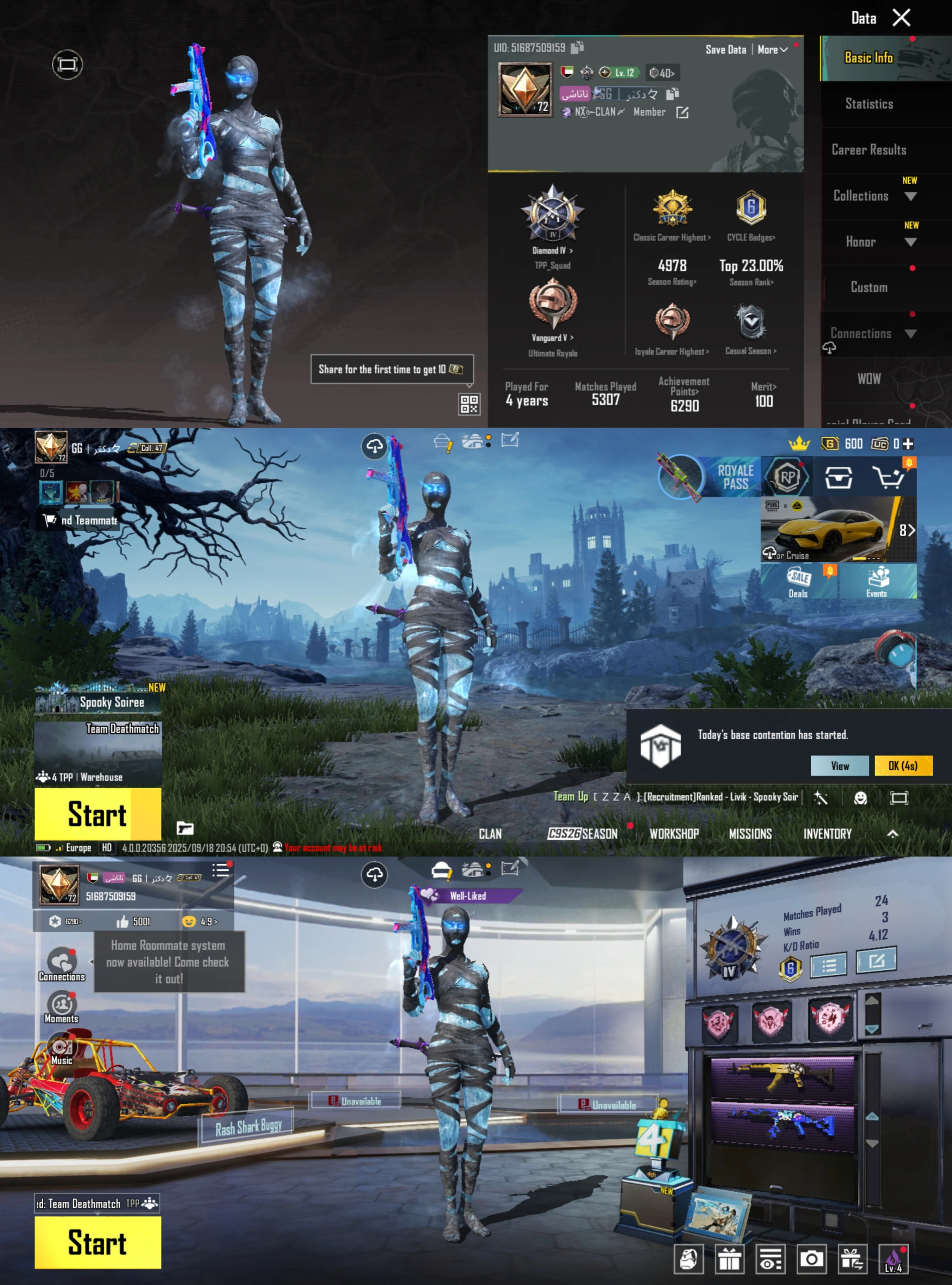 iOS Android 🛍️Level72 ❤️🔥 M416 Glacier ❄️ Mummy Blue 🔥 Beutiful Account 🥳 Good Dans 🧩 Code453