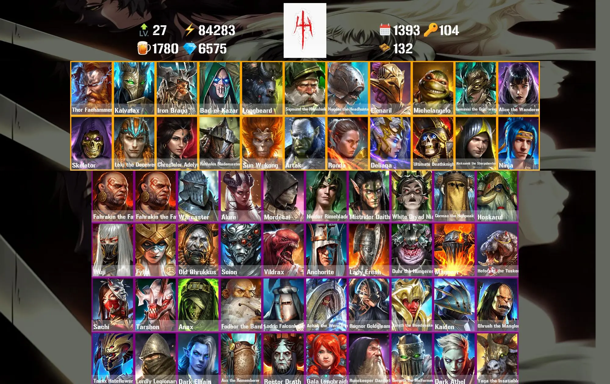 1393 Days 84.3k Energy Thor Faehammer ⸱ Kalvalax ⸱ Iron Brago ⸱ Bad-el-Kazar ⸱ Longbeard ⸱ Fahrakin the Fat ⸱ Fahrakin the Fat ⸱ 54.8m Silver ⸱ 6.6k Gems