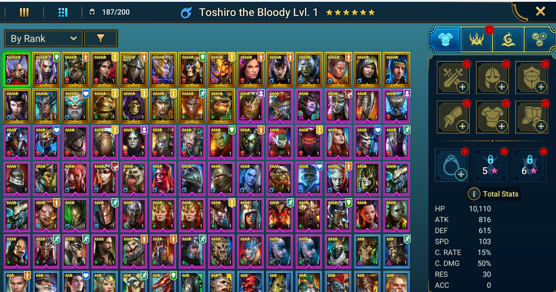 50k Energy ⚡️ [Mythical Starter] Toshiro the Bloody 🚀 Sicia 🎮 Zavia ☄️ Kimi 🏆 Nekmo 🔥 Graal 🏆 Mordecai 🌺 Drath 🎖️ 16 Free Legends 🚀 9,4k Gems 🚀 3 Sacred Shards