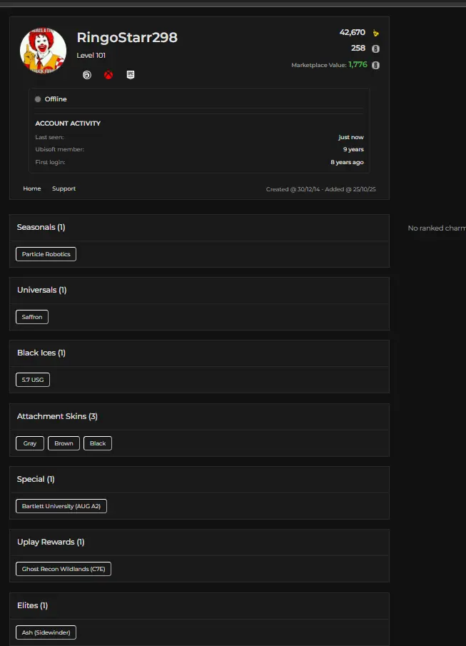 🧊【PC/PSN/XBOX】 • Level 101 • 39 Operators • 64 Skins • Black Ice (5.7 USG) • Elite (Ash) • Universal (Saffron) • 42.6K Renown • 11 Years Old 💥