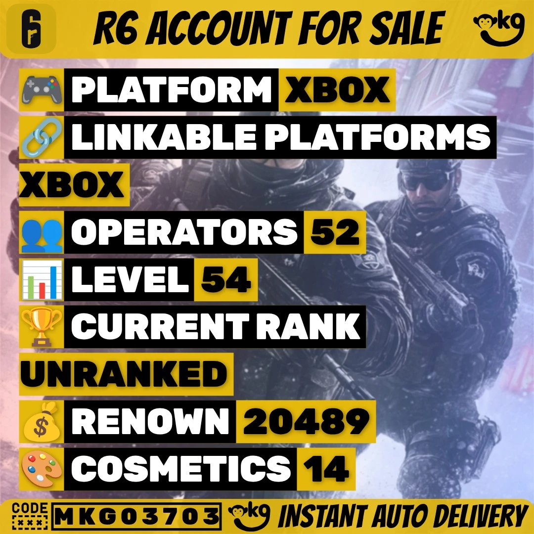 💎 【 XBOX 】 Level 54 ✅ 2 BLACK ICE + 12 SKINS + Unranked ✅ 52 OPERATORS + 💰 20,489 Renown + ⚡ Ready Ranked + 🔑 Full Access !MKG03703