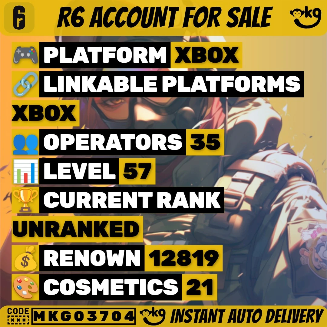 🔥 【 XBOX 】 Level 57 ✅ 2 BLACK ICE + 19 SKINS + Unranked ✅ 35 OPERATORS + 💰 12,819 Renown + ⚡ Ready Ranked + 🔓 Full Access !MKG03704