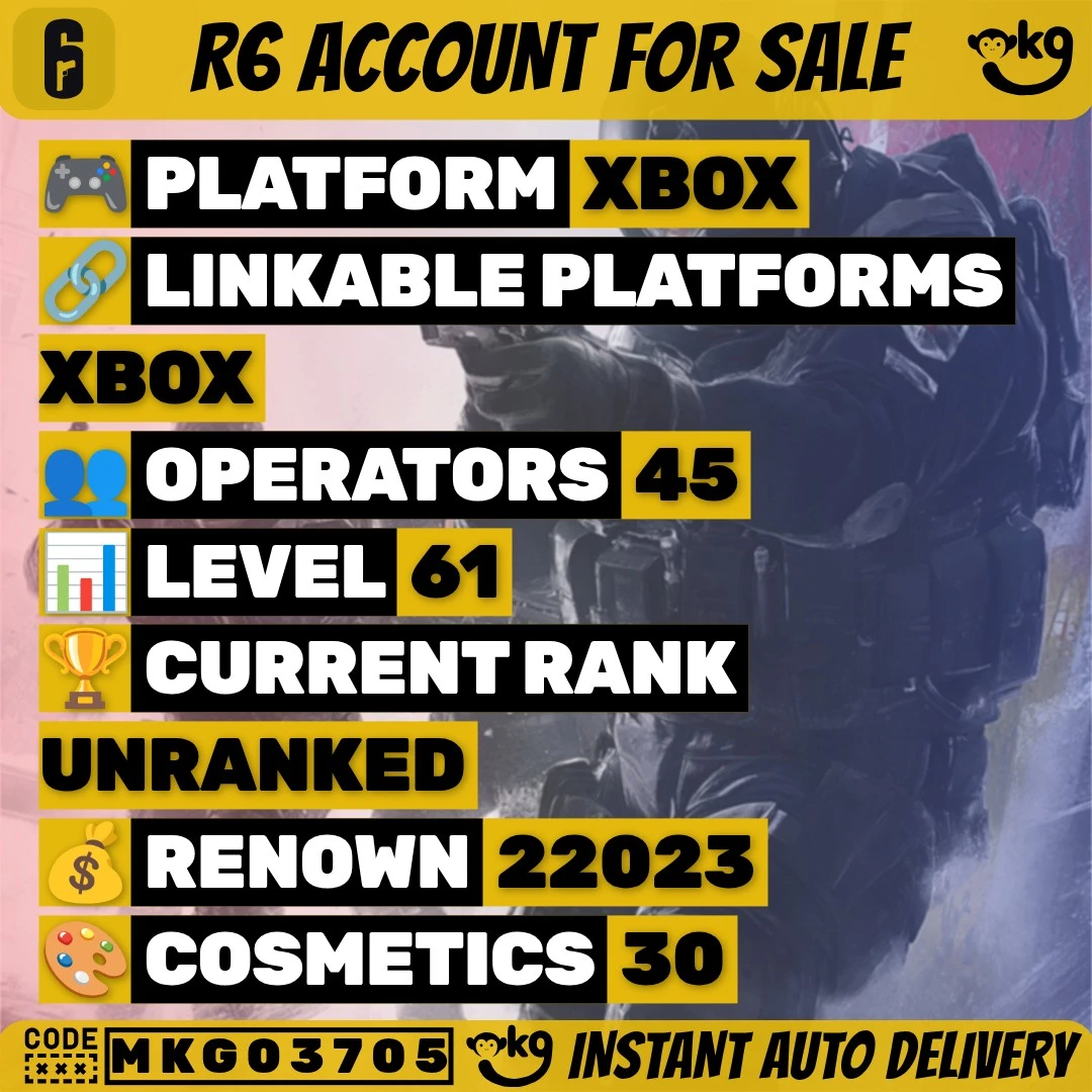 🎯 【 XBOX 】 Level 61 ✅ 2 BLACK ICE + 28 SKINS + Unranked ✅ 45 OPERATORS + 💰 22,023 Renown + ⚡ Ready Ranked + 🔑 Full Access !MKG03705