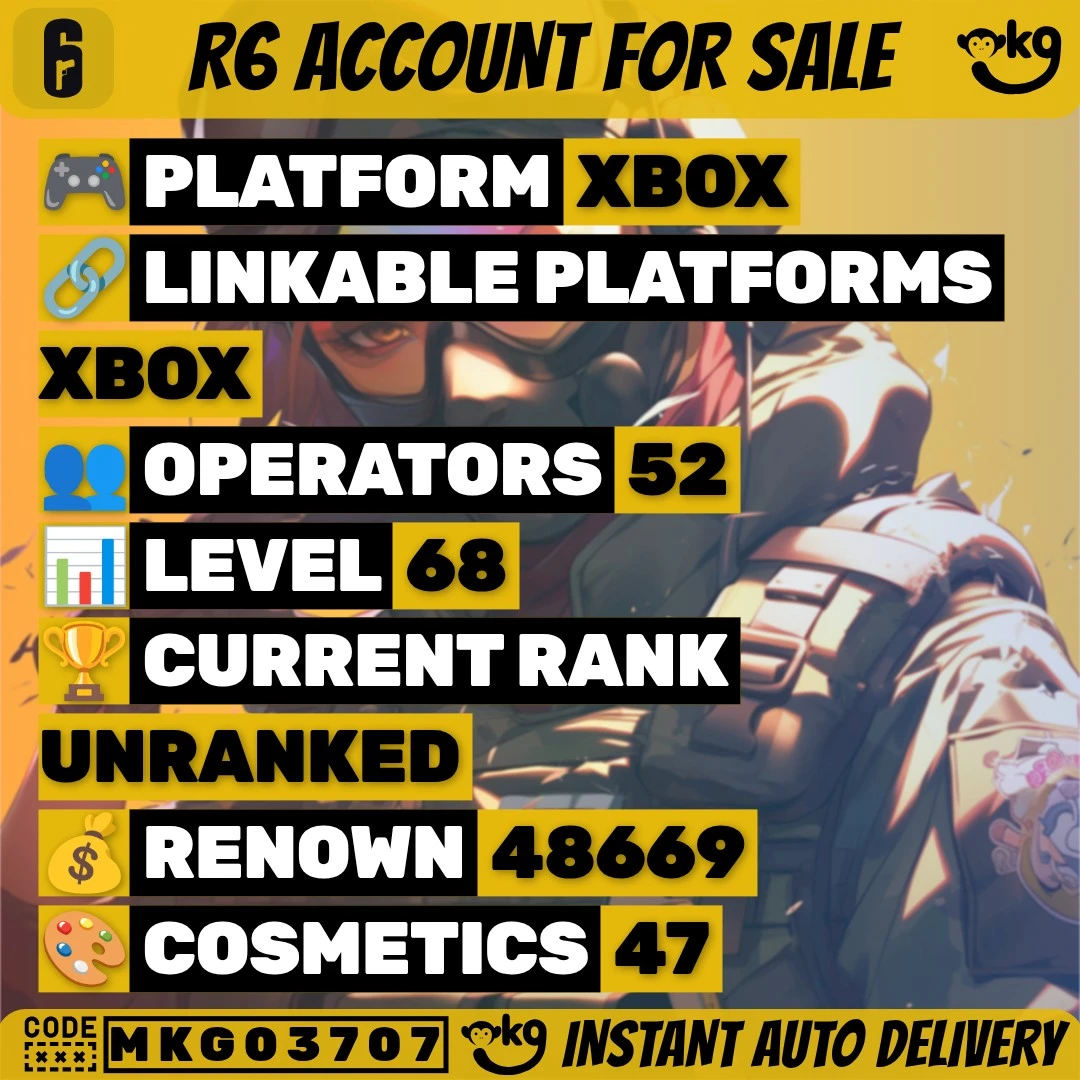 ✨ 【 XBOX 】 Level 68 ✅ 2 BLACK ICE + 1 ELITE + 44 SKINS + Unranked ✅ 52 OPERATORS + 💰 48,669 Renown + ⚡ Ready Ranked + 🔑 Full Access !MKG03707