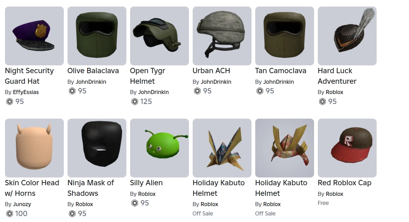 IK728 Korblox Headless Horseman 2021 – 25+ Military & Unique Hats: ACH Helmets, Kabuto, Adventurer, Ninja Mask, Silly Alien, Skin Color Horns, Glitch Bunny, Junkbot, Medieval Hood, Gnome Hat, Blaze Burner