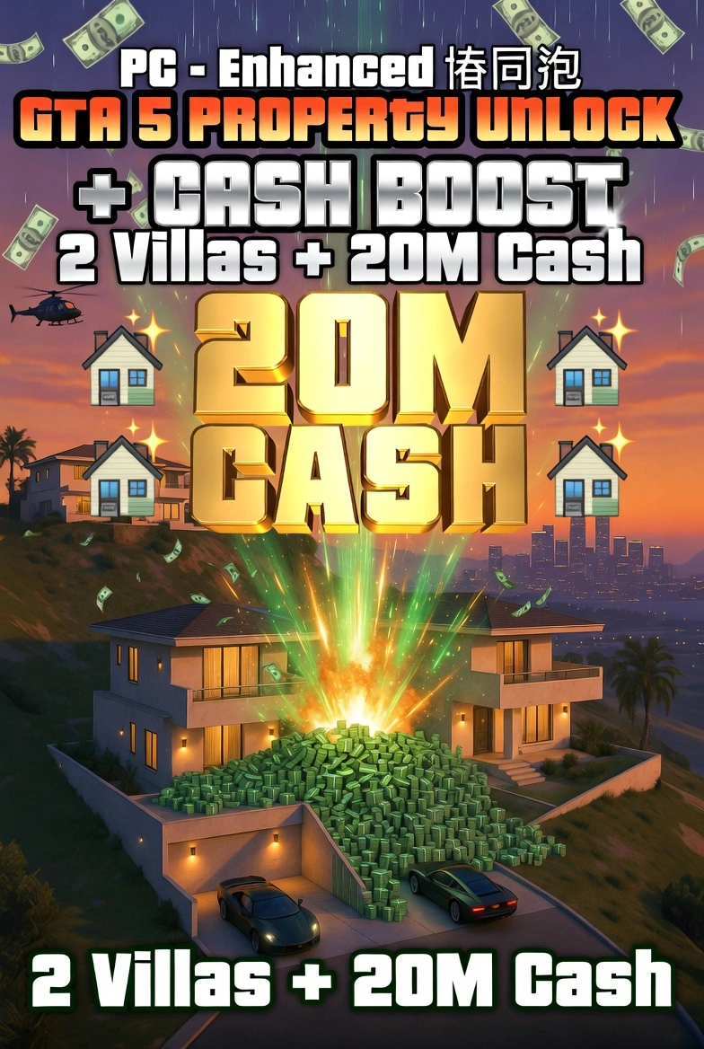 PC - Enhanced🏡 GTA 5 PROPERTY UNLOCK + CASH BOOST | 2 Villas + 20M Cash