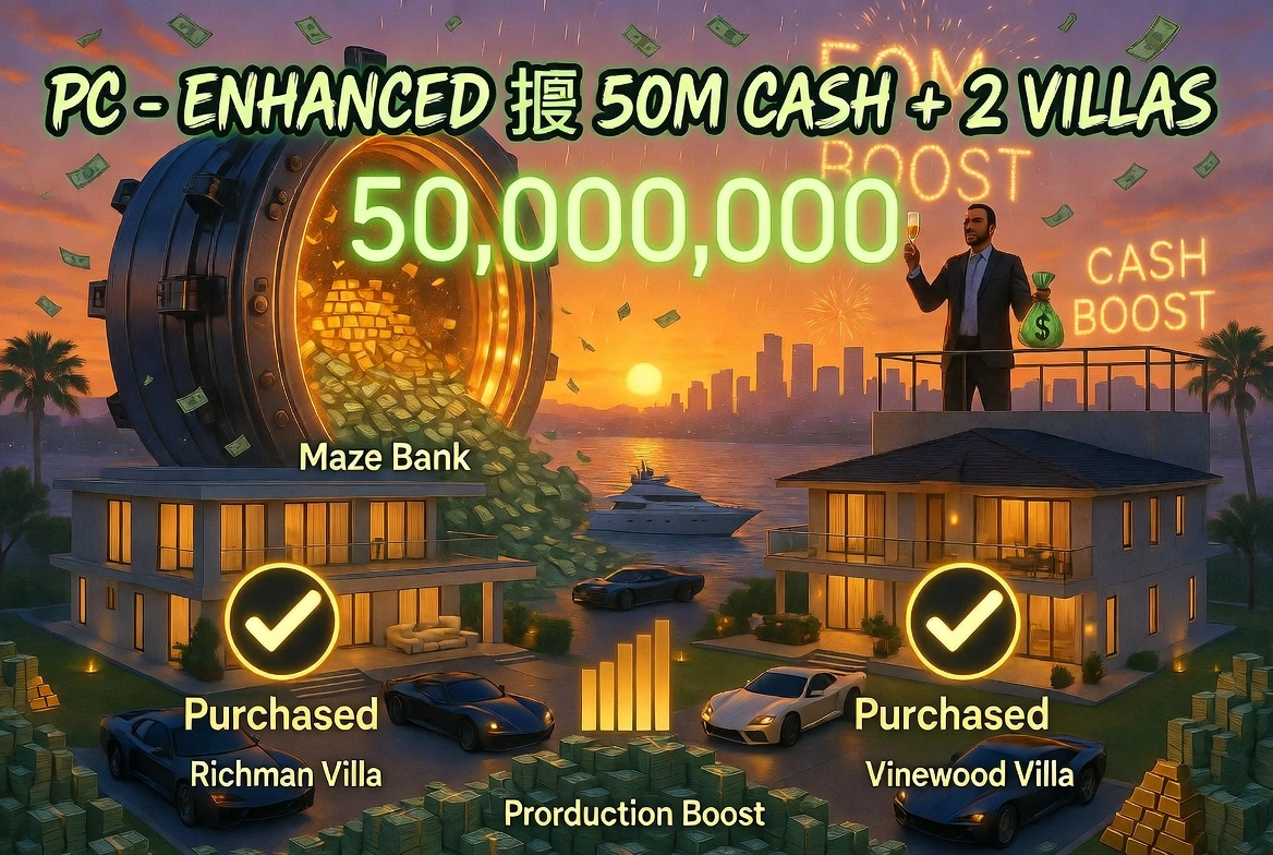 PC - Enhanced🚀 GTA 5 CASH BOOST + PROPERTY | 50M Cash + 2 Villas |