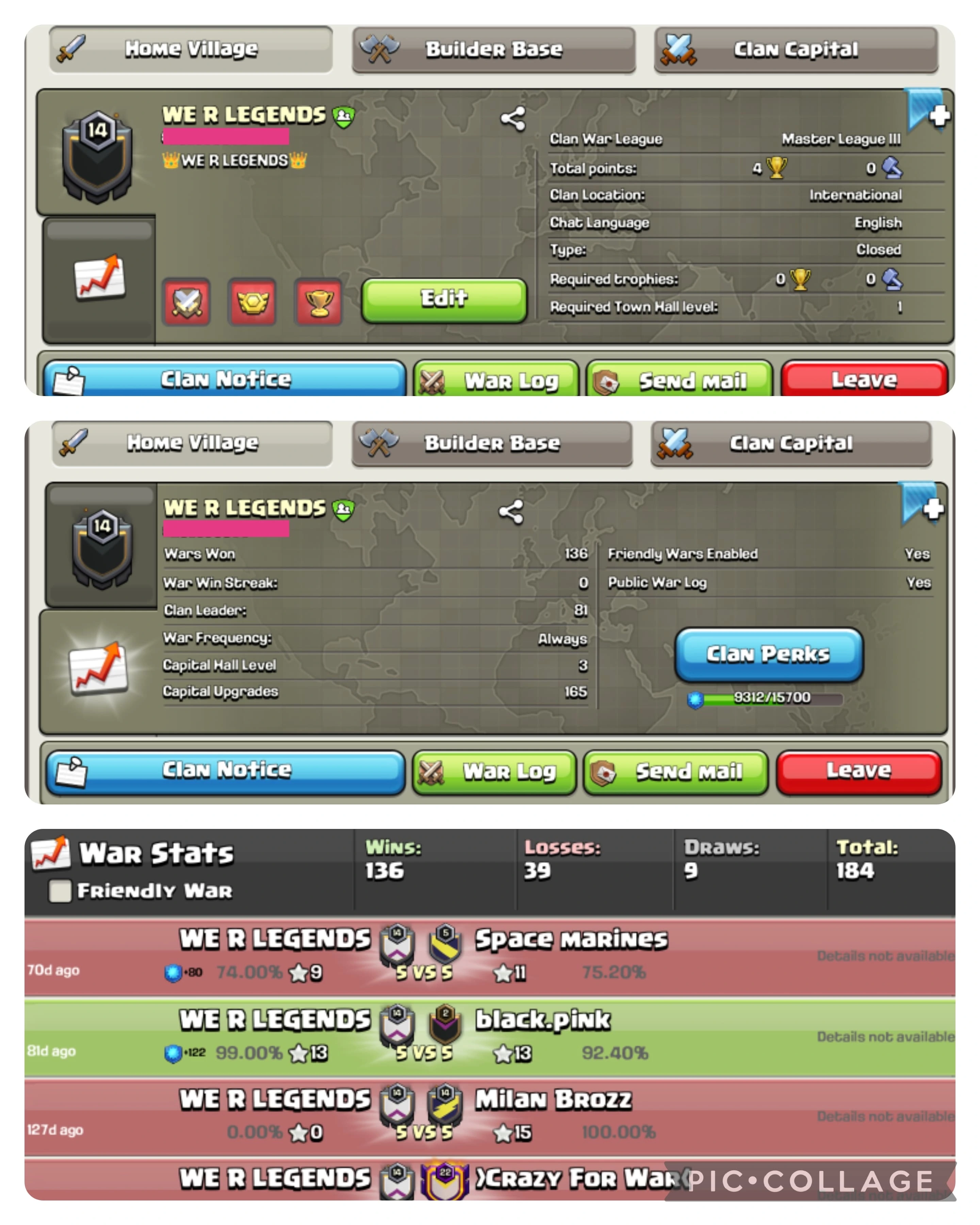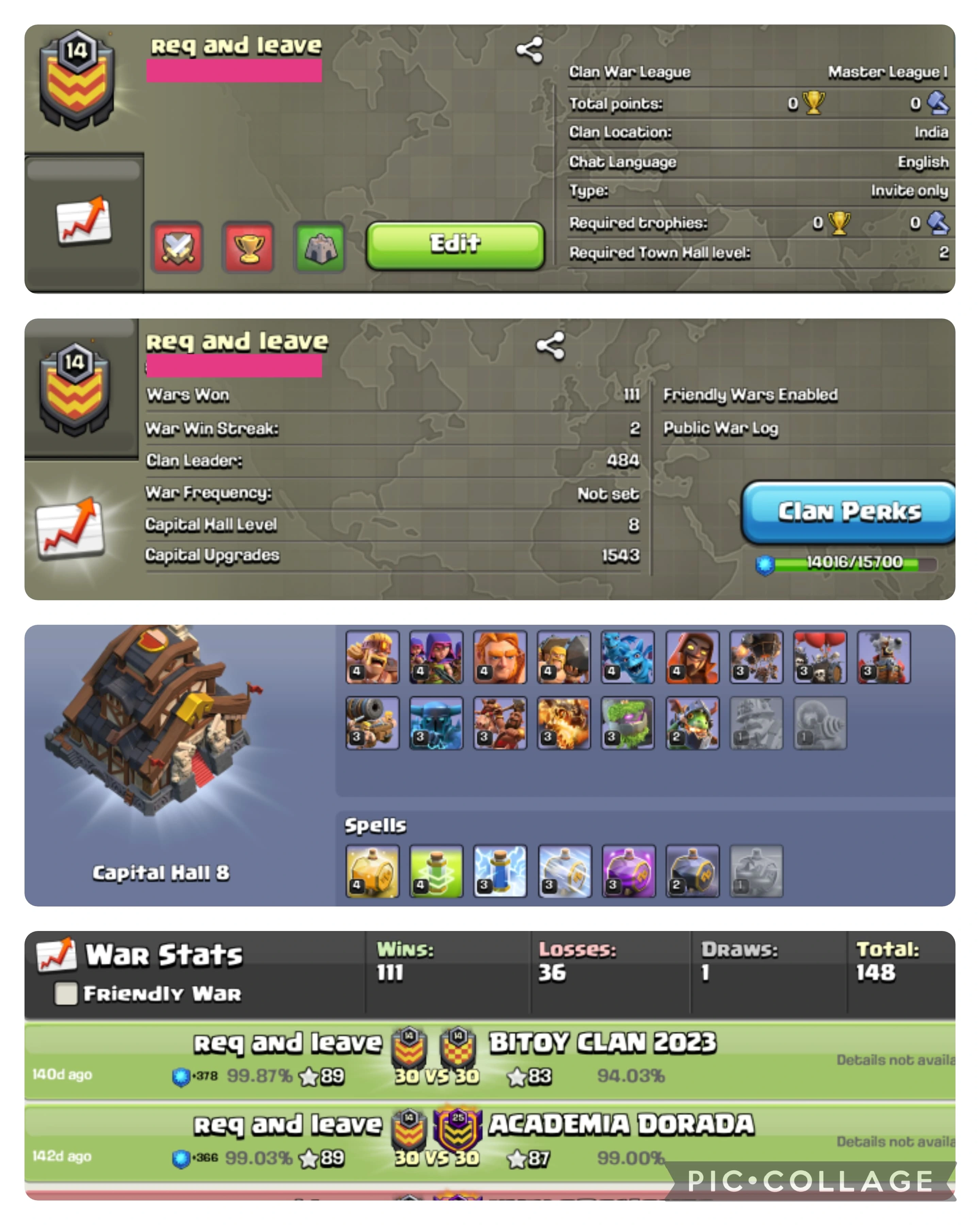 🥶CC 8 + LEVEL : 19 😛 GOLD 1 😶🌫️ NAME : UNIVERSITY CLAN 🤓 167 WINS 275 LOSSES 🙂↕️