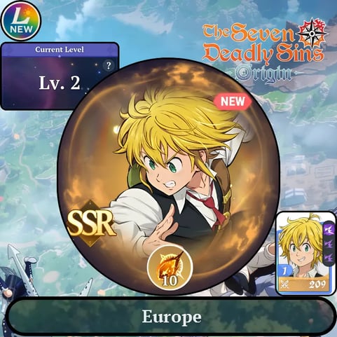 [EU] Europe Lv2 | Escanor + Meliodas | Regular SSR Hero Selection Ticket x2 |Starter account