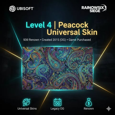 🎮 PC/XBL/PSN | ⭐ Level 4 | 🎨 Peacock Universal | 💰 939 Renown | 📅 Created 2015 | 🎮 Game Purchased