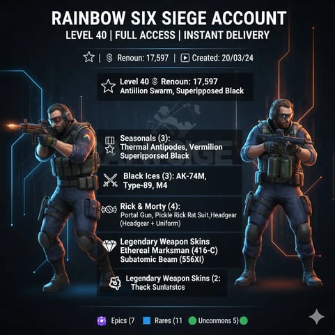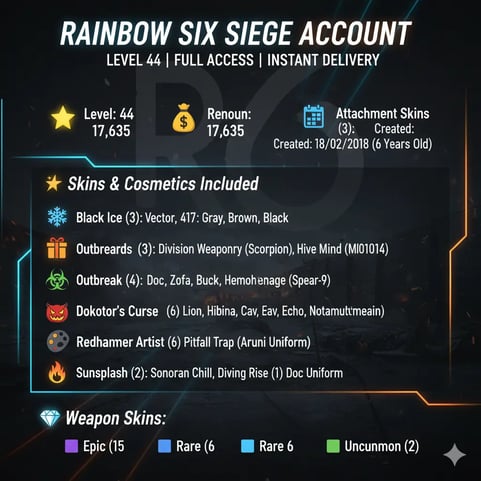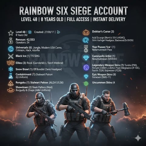 🎮 PC/XBOX/PSN | ⭐ Level 48 | 🕗 8 Years Old | ❄️ Black Ice (T-5 SMG) | 🎭 3 Elites (Rook, Sledge, Doc) | 🎁 Year 4 Pass + Event Sets | 💎 42,553 Renown | 🔑 Instant Delivery