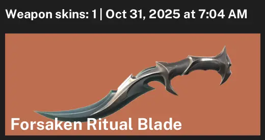 🎲 AP 😨 Unranked 🤞 1 Skins 🍩 250 VP 🐼 3 Agents 🫗 Value: 3550 VP 🪶 Forsaken Ritual Blade