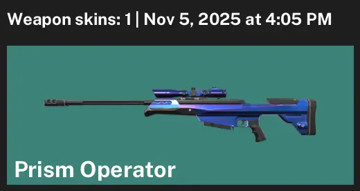 🥵 NA ⛸ Unranked 🛋 1 Skins 🪢 775 VP 🐇 0 Agents 🏎 Value: 1275 VP 🧵 Prism Operator