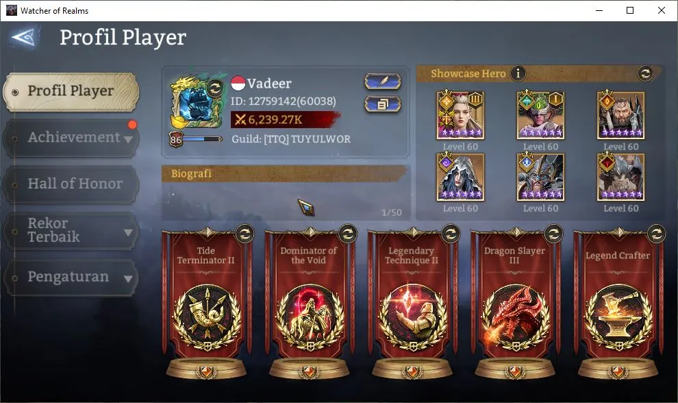Global 60X|Lv100|9,2M Power|10K Gems|11 Lord[PraetusA5,Valderon+Skin,Etc]|85 Legend[ValeriyaA2,YmiretA3+Skin,Sargak,Etc]|WOR1171