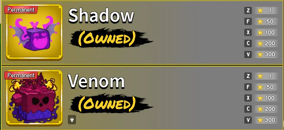 Admin commands + x2 Money + Vip + flying Carpet + Blackhole slap + 4 Permanents Fruits on blox fruits : Venom, Shadow, Portal, Ice, & Dark Blade Total: 78086 R$