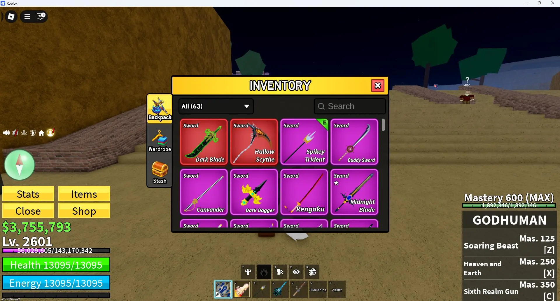 ❤️Blox Fruits ❤️ 2601 lvl ❤️ $3.7M ❤️ godhuman max ❤️ dark blade ❤️ mammoth fruit ❤️ shadow druit ❤️ venom fruit ❤️ spirit fruit ❤️ t-rex fruit ❤️