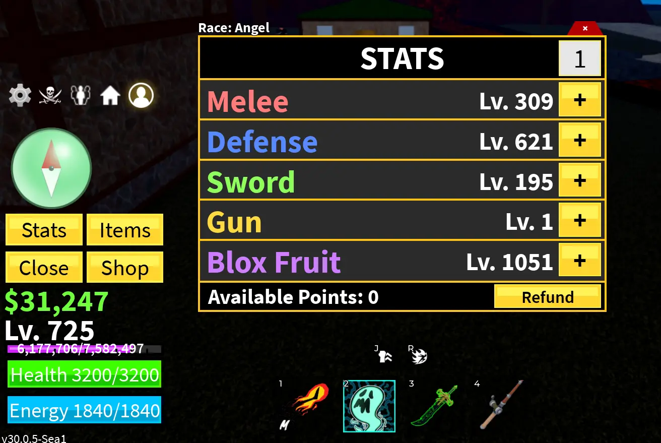 Blox Fruits Lv.725 | Dragon Token | Buddha PERM + Sound PERM + Rocket PERM + Blade PERM | Dark Blade | Angel Race | First Sea | Fruit Main Build | Starter Account | Ready to Progress