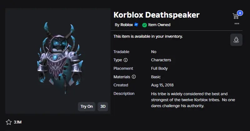 Korblox Deathspeaker is one of the priciest bundles on Roblox. Released on December 26, 2013, this bundle belongs to the Korblox series and features a skeletal warrior character with uniquely floating legs.