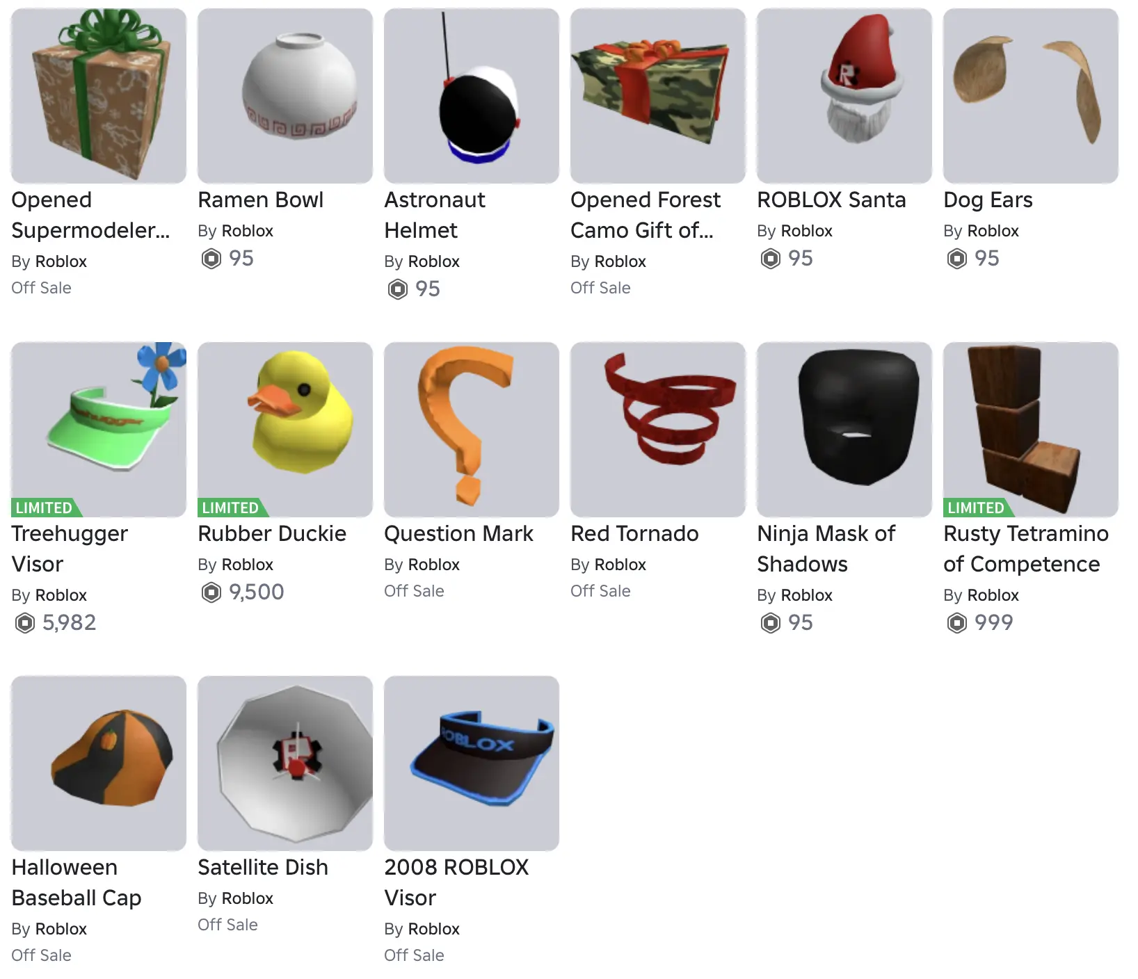 ROBLOX 2008 Account π₯18+ Offsales & Limiteds π₯ 15.5K + Octoblox Head + Rubber Duckie + Question Mark + Red Tornado + Satellite Dish + Treehugger Visor + Ice Cold Stunnas + Halloween Baseball Cap + 2008 ROBLOX Visor | 1K+ Robux SPENT | Unverified β