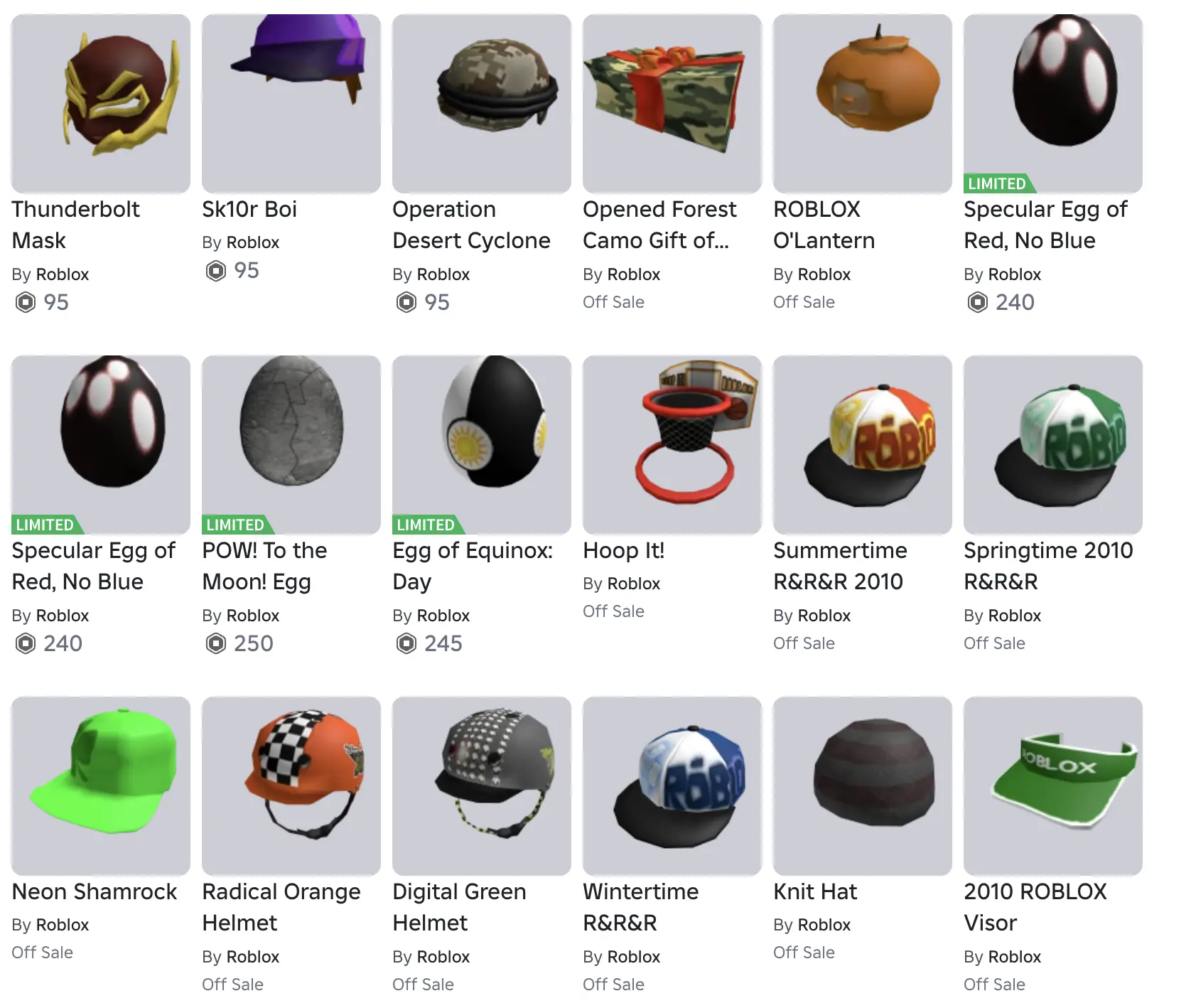 ROBLOX 2008 Account π₯ 35+ Offsales & Limiteds π₯ Hoop It! + ROBLOX O'Lantern + Radical Orange Helmet + Neon Shamrock + Chainmail Helmet + Orange Paintball Mask + R-80 + Ninja Mask of Light + Wintertime R&R&R | 1K+ Robux SPENT | Unverified β
