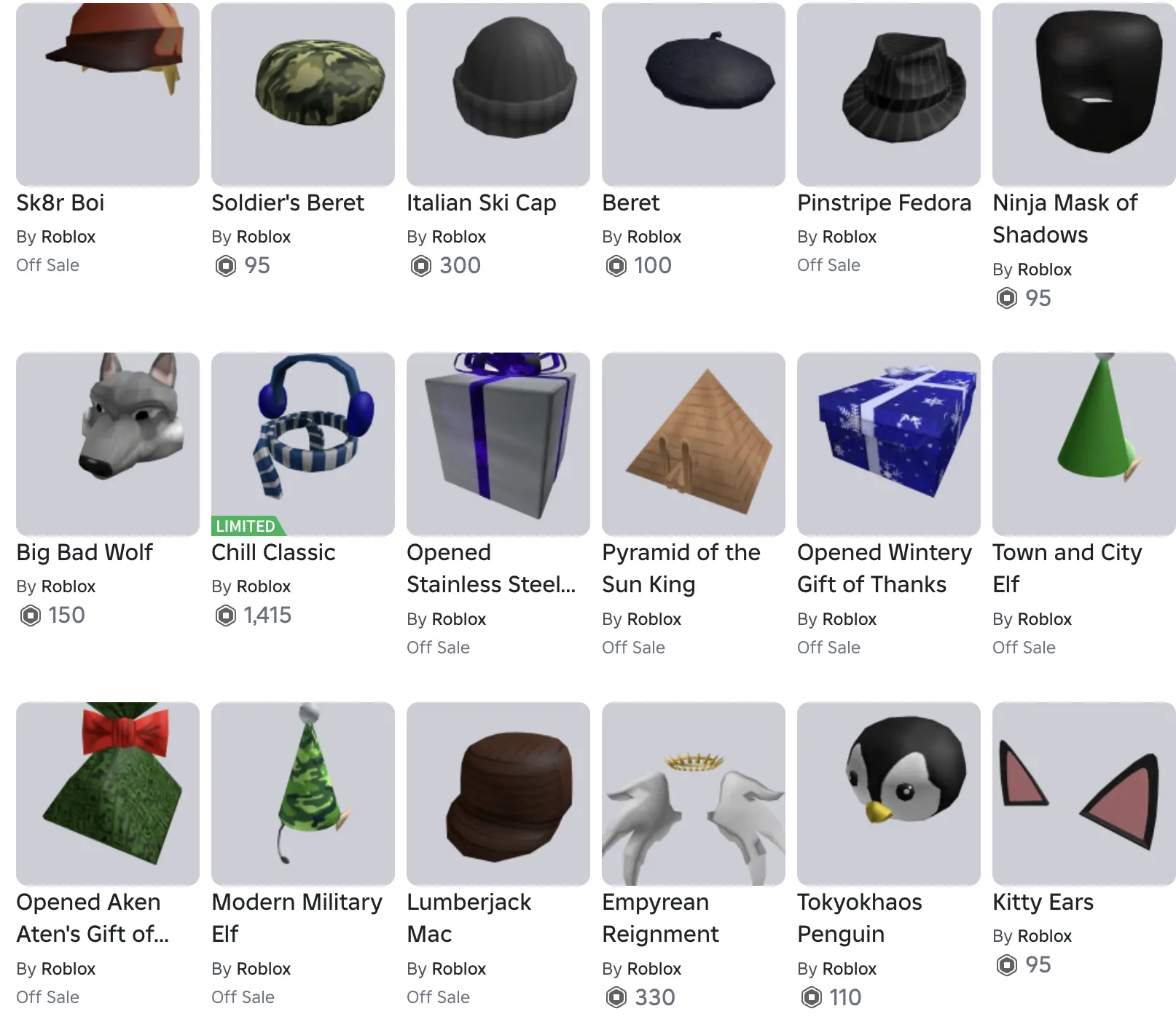 ROBLOX 2009 Account π₯ 103+ Offsales & Limiteds π₯ 15K RAP + Pinstripe Fedora + Black Iron Shutter Shades + Deathfyre Mask + Evil Duck + Town and City Elf + Pyramid of the Sun King + Christmas Tree Lights + Pumpkin Cap | 13K+ Robux SPENT | Email Access β